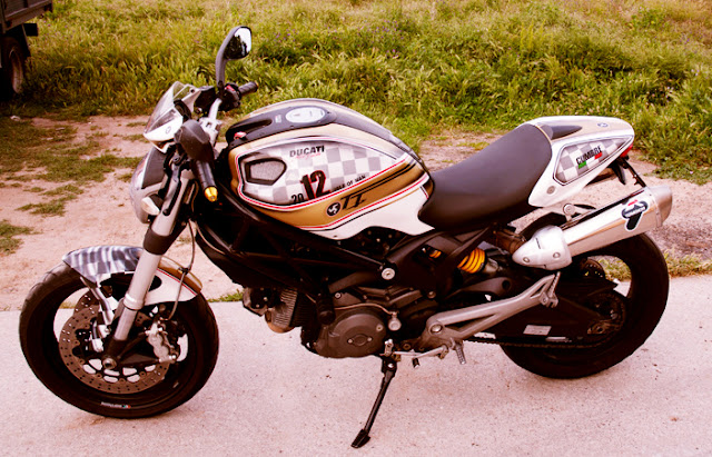 Los kits “Monster Art” como el corse cuestan una pasta, unos 600€ me pidieron a mí en el concesionario. Son 5 piezas: las dos tapas del depósito, el cubre colín, la mini cúpula y el guardabarros delantero.