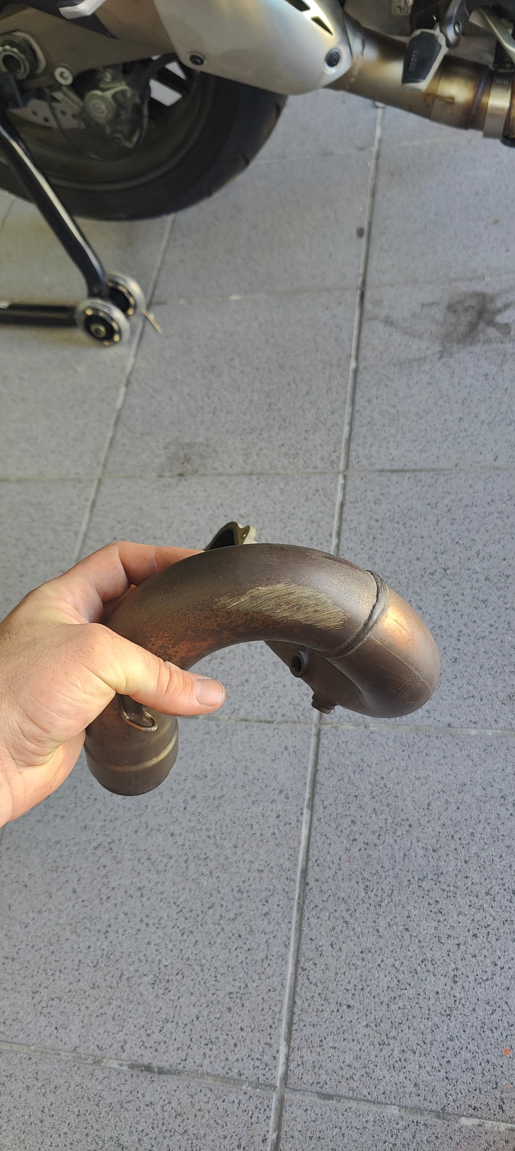 Hola buenas, el colector de escape de mi Ducati Monster 821 del 2016, cuando la enciendo no sale humo ni nada pero a la que la dejo un rato empieza a salir humo blanco como si estubiera en contacto con algo i hace que salga humo blanco como si se quemará algo, pero no es por el silenciador, es en el colector que Lugo conecta con el tramo intermedio, lo he desmontado i no veo fugas, porque puede ser eso ?