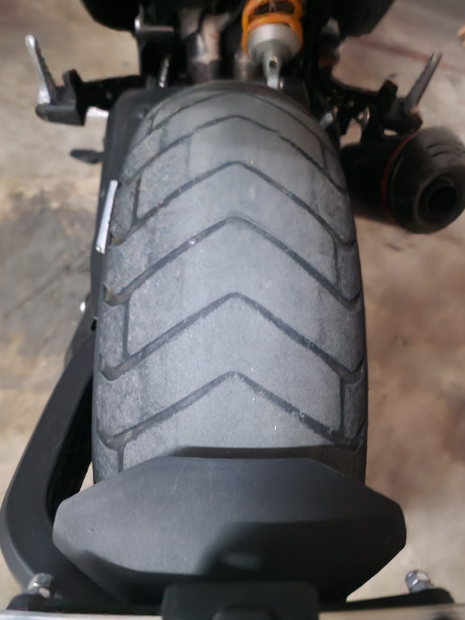 Hoy he cambiado el neumático trasero de la Icon, vuelvo a repetir con el Scorpion STR tras 18.000 km. Todavía le quedaba algo de vida pero al tumbar ya se notaba un pequeño extraño, estaba más desgastado por el centro. El delantero tiene los mismos kilómetros y le queda más de media vida, así que lo mantengo.