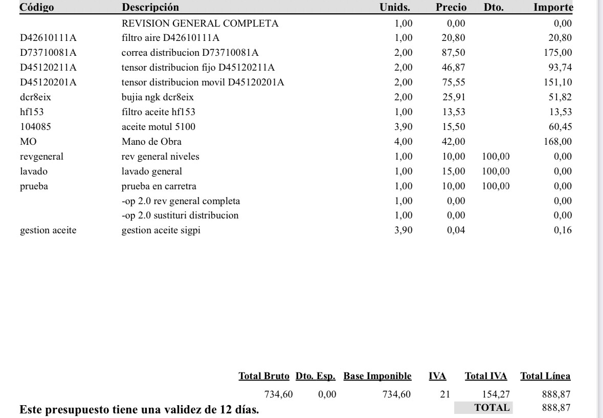 A mí lo único que me llama la atención es el cambio de tensores, supongo que estarían mal pero en la revisión de correas el precio es + o - normal menos 300€ de los tensores que no es habitual cambiarlo en dicha revisión.